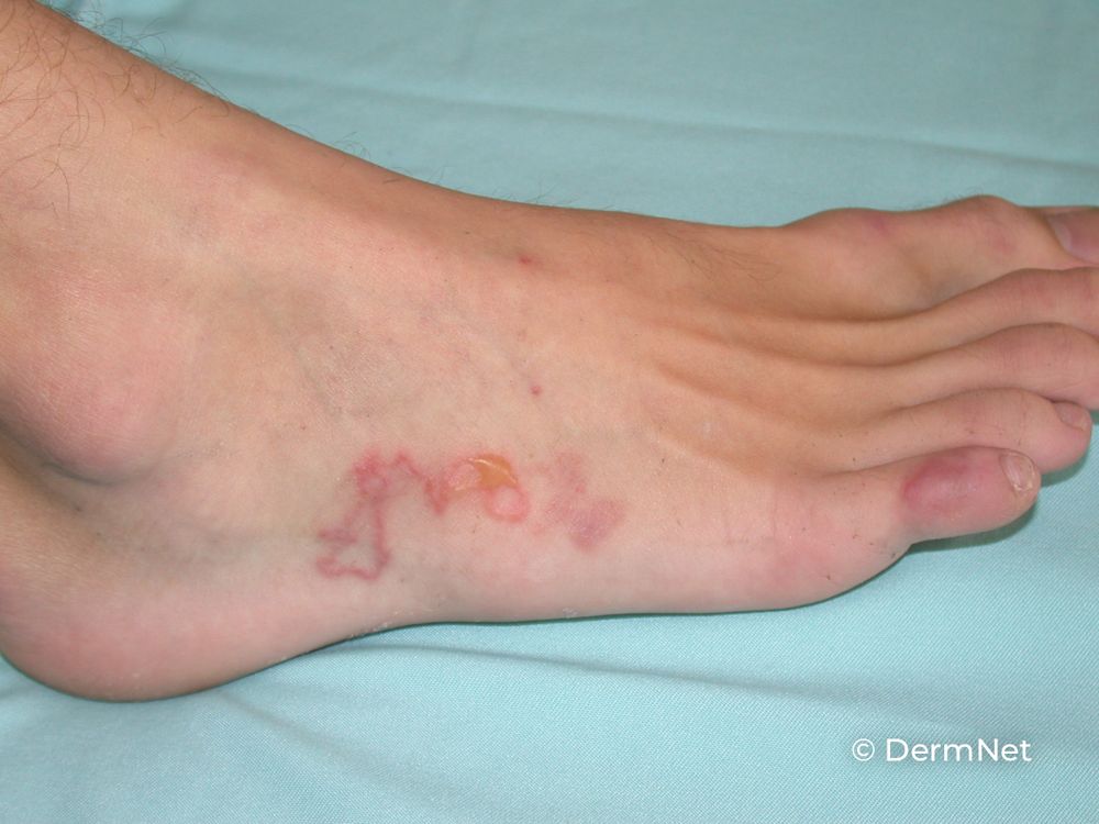 A Florida man presents to your ED with burning pain of right arm and chest after attempting to catch a pretty sea creature that reminded him of his ex-girlfriend.