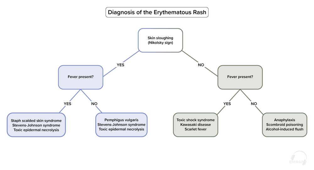 Name palpable (2) vs non-palpable (3) petechial rashes in a febrile/toxic patient