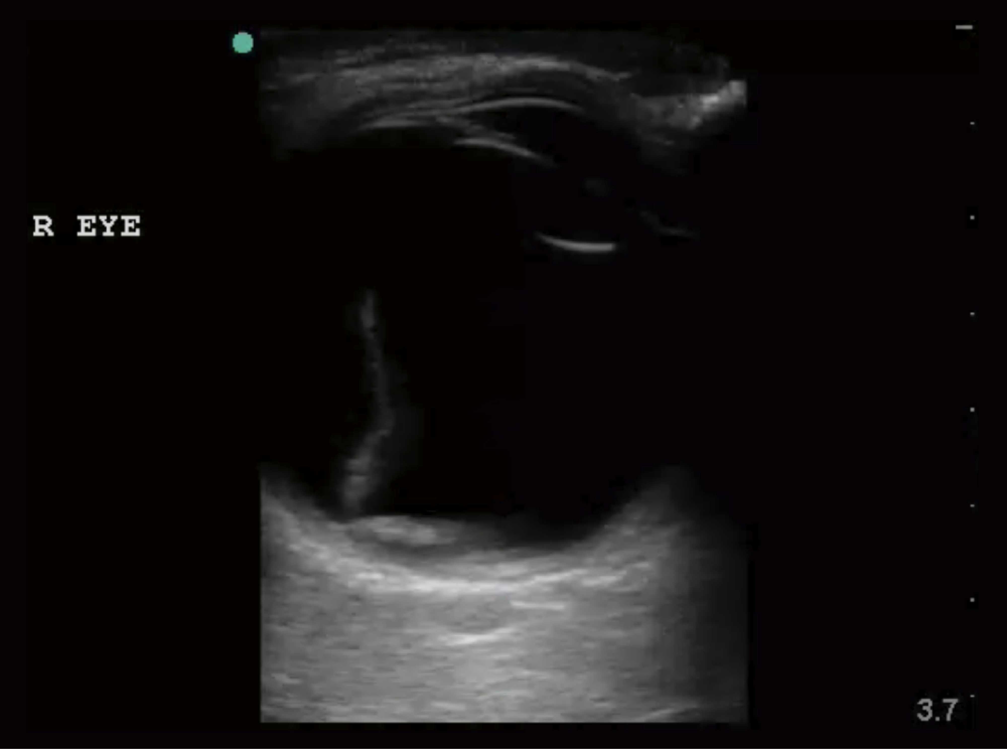 77-year-old man presents with vision loss. He reports seeing flashes of light and then losing vision gradually. Denies pain. Visual acuity is 20/200 in the affected eye. Bedside ultrasound image shown below. What is the diagnosis?