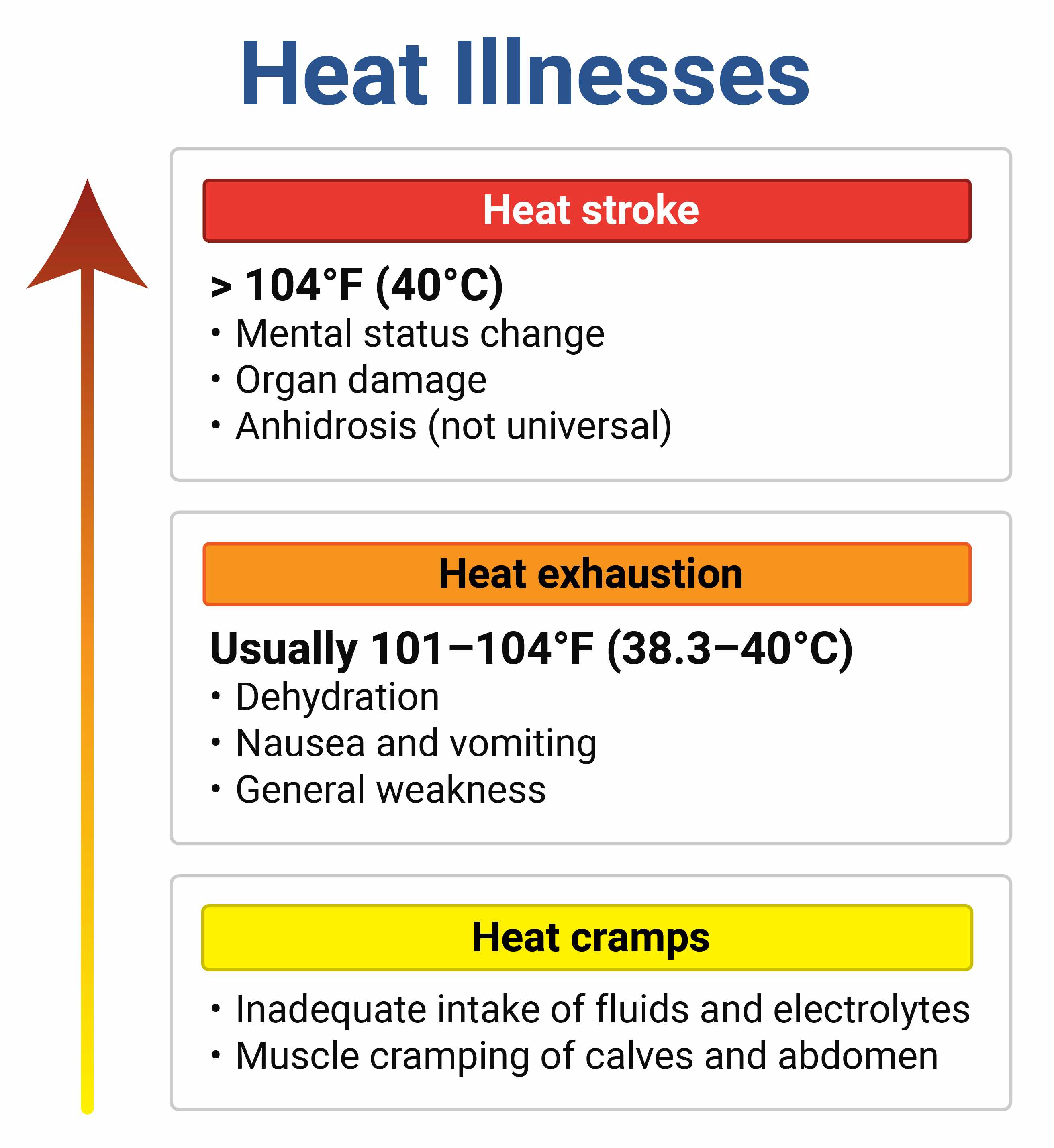 Florida man presents to your ED after a Miami EDM festival in July, he complains of dizziness, headache, nausea, muscle cramps, edema. His friend says he had a syncopal episode, no head strike. On exam, no head trauma, neurologically intact, vitals show tachycardia, hypotension, temp of 103F. What is the most likely dx?