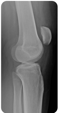 A 16-year-old boy presents to the ED with acute left knee pain. He was riding his bicycle when his back tire was hit by a car. He reached his left leg outward while attempting to prevent his bike from falling and felt a “pop” and then excruciating knee pain. The patient is lying in bed with his left knee slightly bent, but he is unable to move the leg or knee. There are no obvious bony deformities. You feel boggy swelling and tenderness over the patellar region. His lateral knee X-ray is shown above. What is the most likely diagnosis?