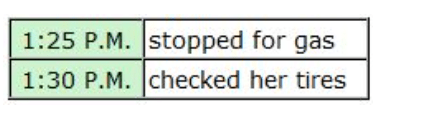 Note: Do not include the specific times.
