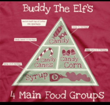 In the movie "Elf," what are the four main food groups according to Buddy?