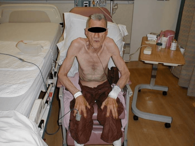 A person sits or stands leaning forward and supports the upper body with hands on knees or another surface.