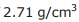 The sample has a mass of 14.7 g and a volume of . What is the density of the mineral sample?