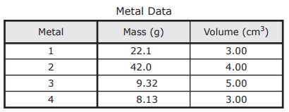 A manufacturer selected a metal to use in producing a lightweight button for clothing. A metal that has a density of  was selected.