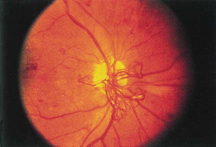 A 59-year-old man undergoes a comprehensive ophthalmologic examination after a recent diagnosis of type 2 diabetes mellitus.