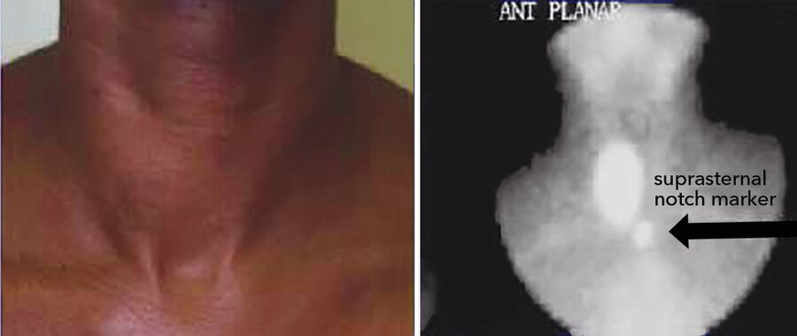 The neck and corresponding thyroid scan are shown.