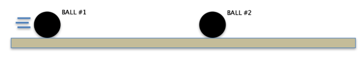 Explain what happens to the energy in the scenario when ball #1 comes in contact with ball #2
