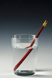 Explain what is happening to the light in this photo that makes the pencil appear broken.