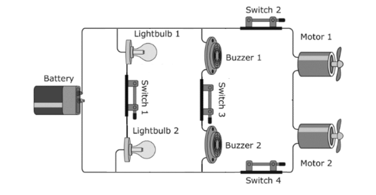 Which part(s) of the circuit could be removed and still allow the circuit to be closed/complete?