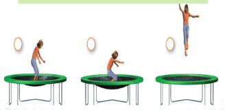 Juanita is jumping on a trampoline. In position three, she is at her highest point. What type of energy does she have in the third picture because of her position?
