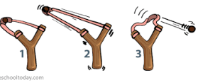 Jenna is playing with a slingshot. In diagram #2, you see how she pulled the ball back in the elastic band. In diagram #3, you see how the ball went flying after she let go. Which diagram shows when the ball has kinetic energy?