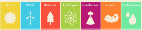 Name 3 examples of RENEWABLE energy.