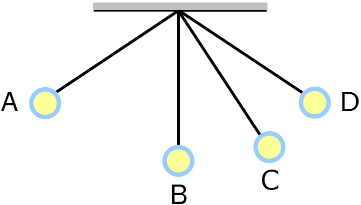 The point on this pendulum where the values of potential and kinetic energy would be the closest.