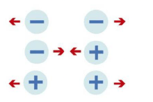 La interacción magnética de los polos positivo y negativo de un imán.
