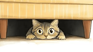 The cat is hiding ________ the sofa because it is scared of the dog.