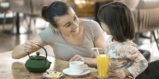 Every morning, my mom __________ (drink) coffee, but right now he __________ (drink) tea.
