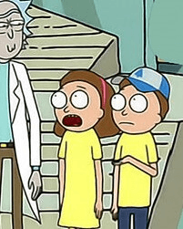 It has been mentioned by its creator that this cartoon exists within the same universe as Rick & Morty - a clue to this is the two Morty clones dressed as the brother/sister main characters, shown below.