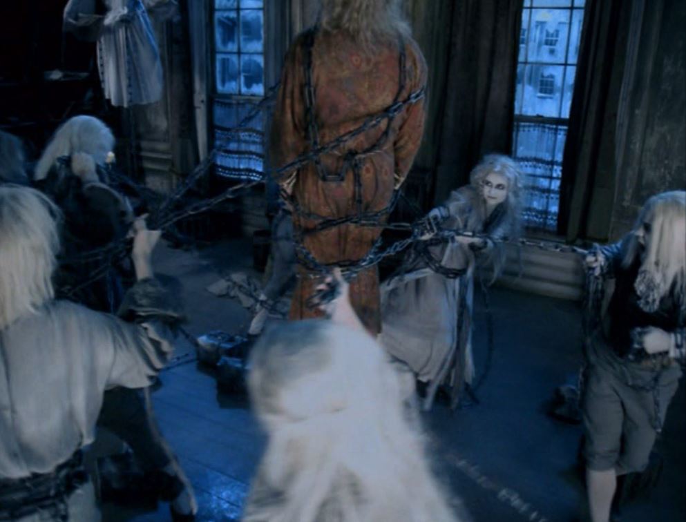(the ghost that comes and tells Scrooge he will be visited, the ghosts of Christmas Past, Present and Future