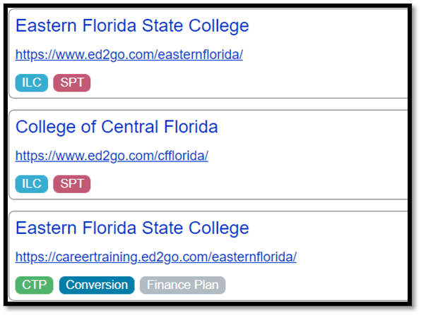 Salesforce, Admin Tools, Live Chat, Ed2go catalog, Tuition Flex