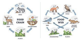 A food web shows the potential feeding interactions.