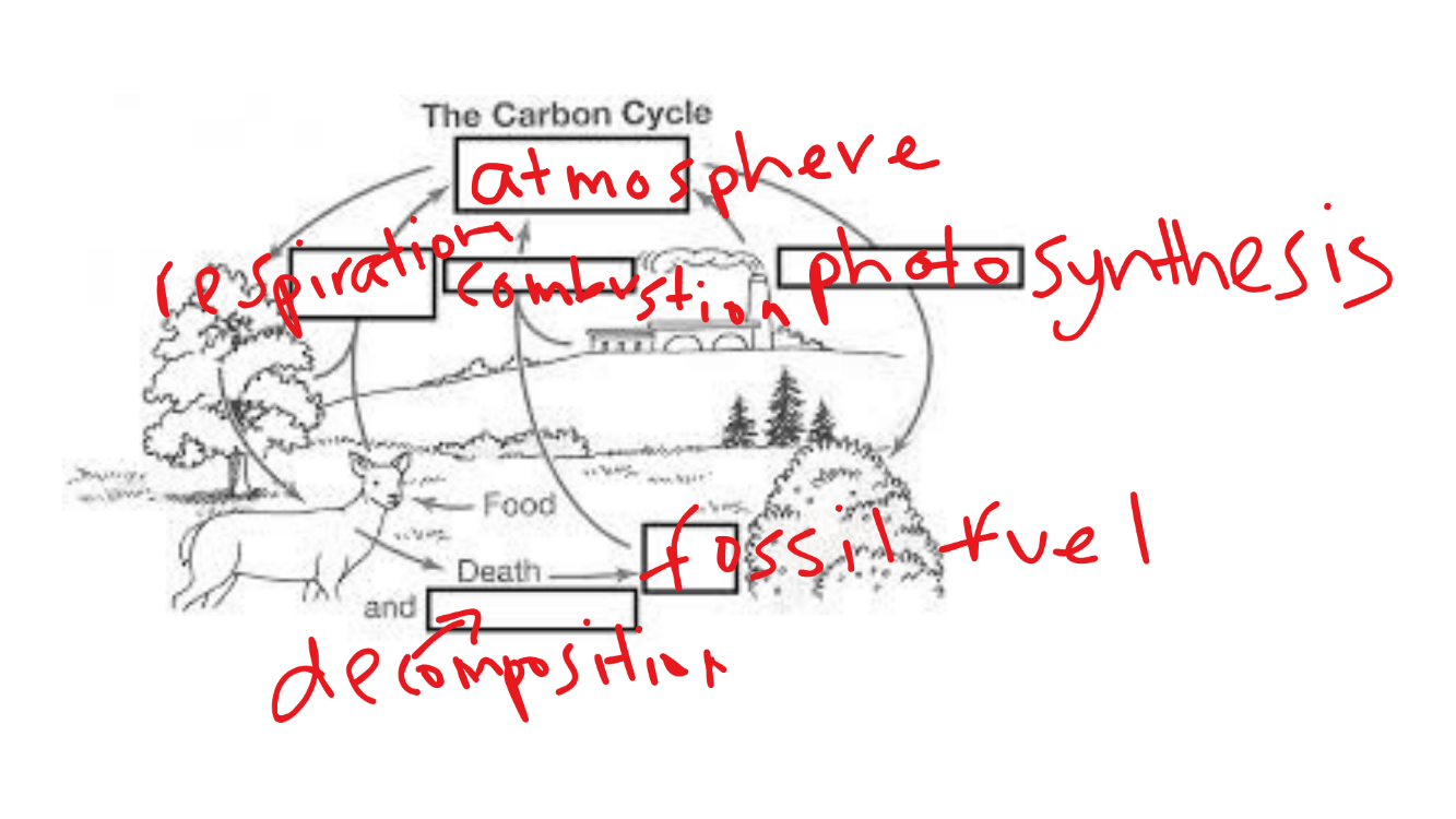 Fill in all blanks on the carbon cycle diagram.