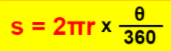 What is the formula for arc length using a radius when the central angle is in degrees?