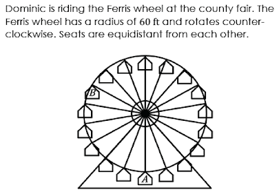 About how many feet has dominic traveled if the full ride is 4 revolutions? Leave your answer in terms of π.