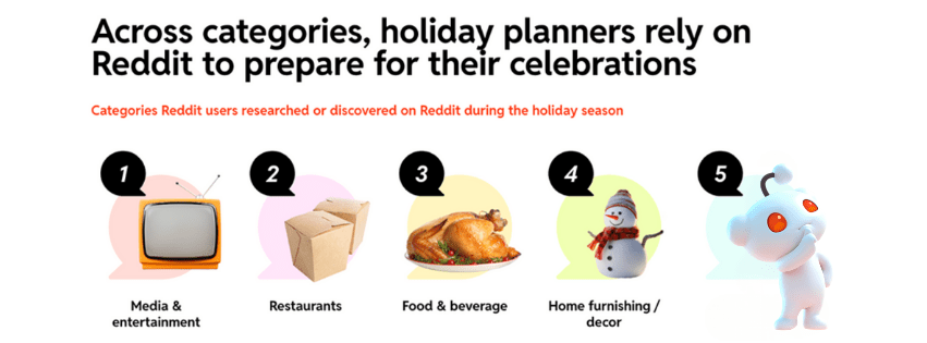 The 5th highest holiday planning category Reddit users are researching so far this 2025 holiday season.