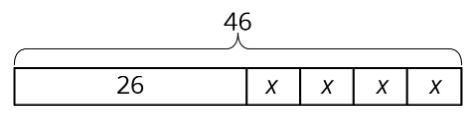 46 = 26 + 4x