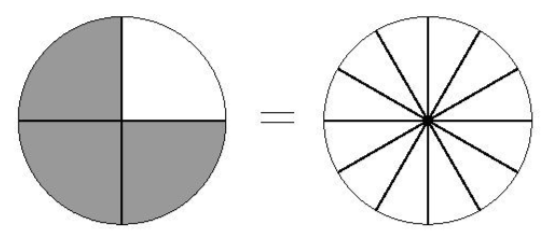 Joe at 1/4 of a pie. Maria ate the same amount of pie. What is an equivalent fraction to represent the amount of pie Maria ate?