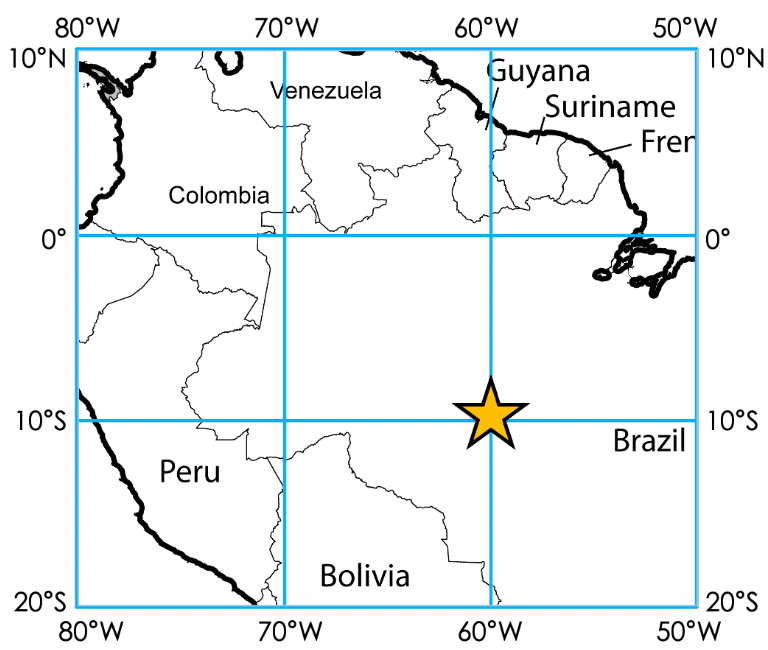 ¿Cuáles son las coordenadas correctas de la estrella en el mapa de América del Sur?