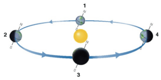¿Qué estación sería en el hemisferio norte cuando la Tierra esté en la posición 4?