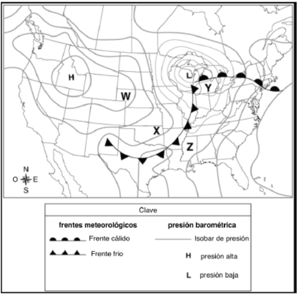 Cierto o Falso. La ubicación X tendrá cielos nublados porque está ubicada dentro de un sistema de alta presión.
