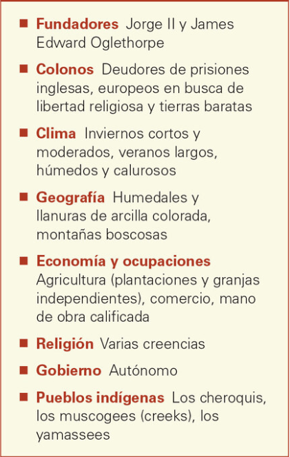 Maryland, Virginia, Carolina del Norte, Carolina del Sur, Georgia