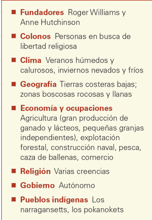 Enumera (list) 3 Colonias de la región de Nueva Inglaterra