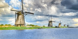 A common sight in the Netherlands, these structures are used to pump water out of the low-lying polders to reclaim land from the sea.