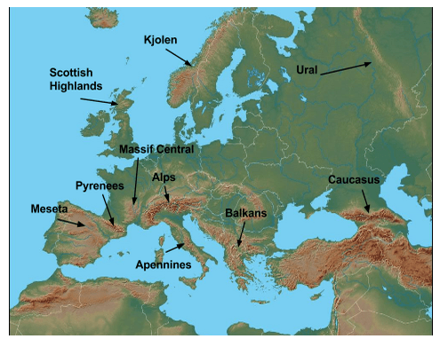 The two mountain ranges are often considered the traditional boundary between Europe and Asia. Also two most eastern mountain ranges in Europe.