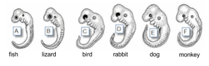 How do the diagrams of the embryos of 6 different species (shown below) provide evidence for evolution?