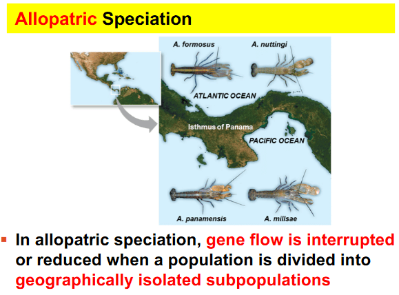 When Arizona's Grand Canyon formed, a population of squirrels were separated and no longer able to make contact. Over time, the two new populations diverged giving rise to two new species of squirrels. This is an example of