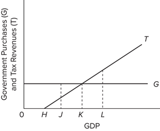 A. reducing government purchases so that the purchases line shifts downward but parallel to its present position.