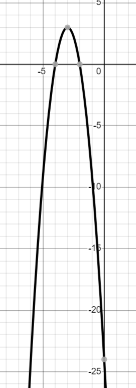 Graph goes through the points (-4,-4),(-2,-4),(-1,-8),(-5,-8) with Vertex at (-3,0)