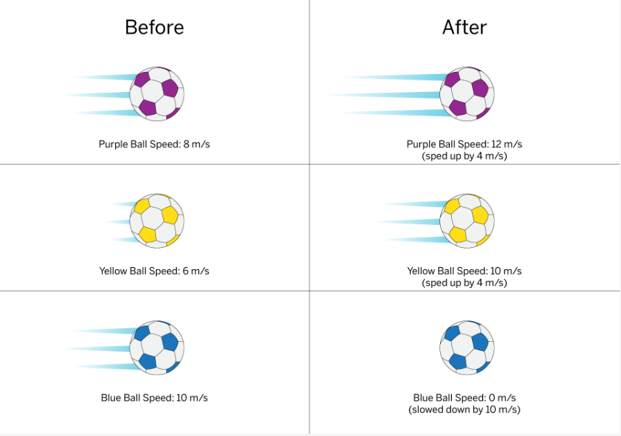 Which of the following soccer balls has the greatest velocity?