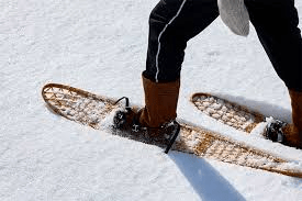 Snowshoes are specialized gear for walking over snow. The large footprint spreads the user's weight out and allows them to travel on top of the snow.