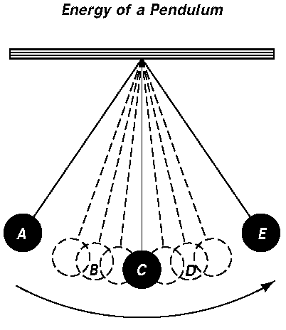 Describe how the kinetic and potential energies of the pendulum are changing at position B.