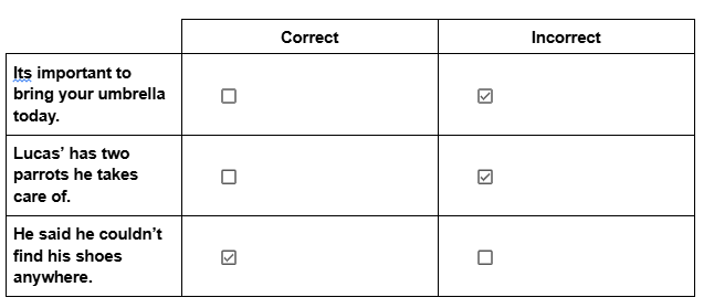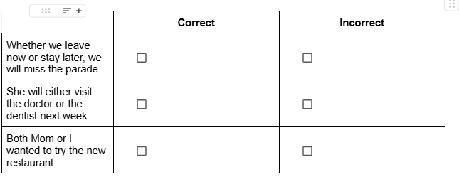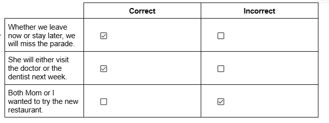 Complete the table to show which sentences show the correct or incorrect use of correlative conjunctions.