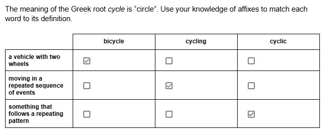 The prefix inter- means between. What is the meaning of the word “intersect” in the sentence?