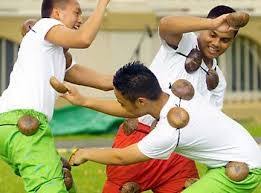 In this dance you must keep with the beat of the bamboo, or else your ankles will suffer the consequences.