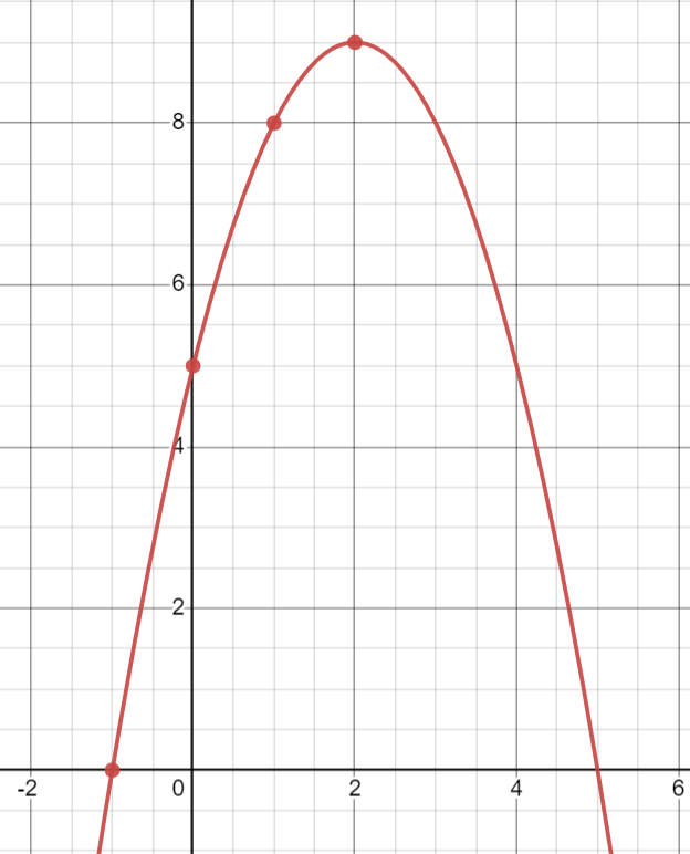 (-1, 0) (2,9) then find slope: (9-0)/(2+1)= 9/3=